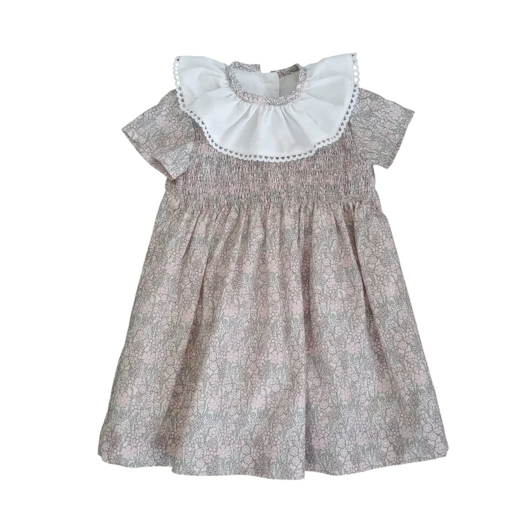 This beautiful dress features an all-over floral print with gentle smocking across the bodice and a sweet white collar trimmed with the daintest lace. Perfect for garden parties, family photos, and every special moment in between. A timeless piece designed for little girls who love to look as lovely as they feel.
