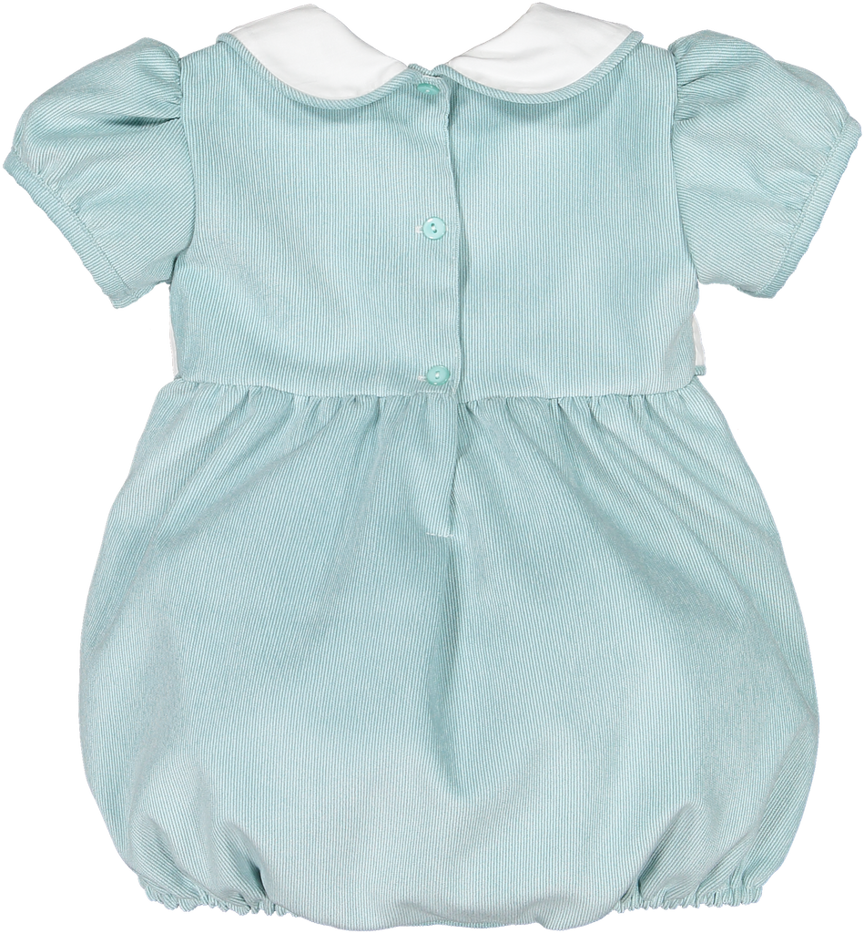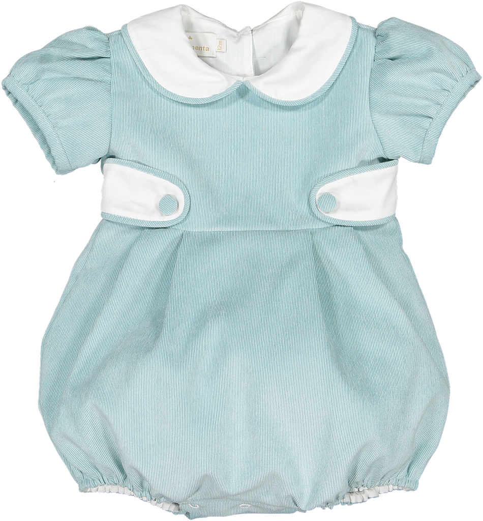Capture timeless charm with this delightful mint green bubble romper, perfect for your little one's special moments. Crafted from soft, fine-wale corduroy, this vintage-inspired piece blends comfort with classic style.